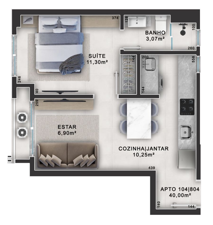 - Área privativa de 42,00 Amplitude e sofisticação em cada detalhe.
