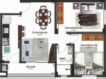 - Dormitórios2 Suítes2 Banheiros1 Garagens1