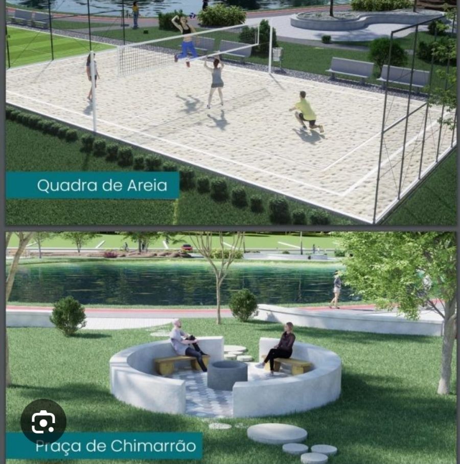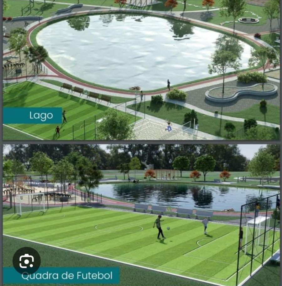 Lago, Pergolado, espaço Pet, Playground, academia ao ar livre, Praça de chimarrão, Pista de bike Cross, Pista de corrida e caminhada, Quadra de futebol de grama e Quadra de areia