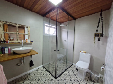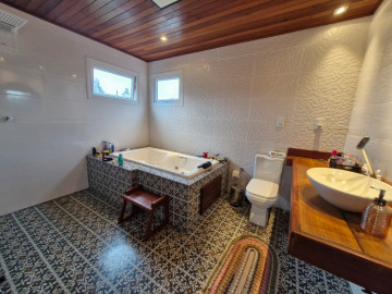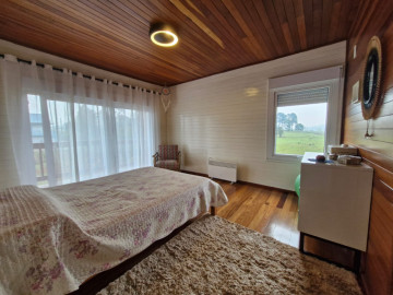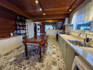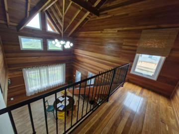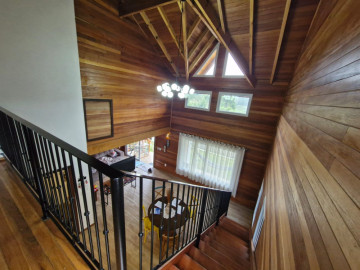 Acabamento da casa, toda construída em madeira dupla de lei (interna garapeira e externa ipê mesclado), piso inferior com revestimento vinílico e porcelanato, e piso superior com assoalho madeira de lei; todas as janelas em PVC com excelente acabamento e acústica, contendo venezianas elétrica; aquecimento com placa solar, iluminação em Led, cobertura com telha shingle (proporcionando maior segurança e conforto térmico e acústico), além de monitoramento por camerâs e alarme.