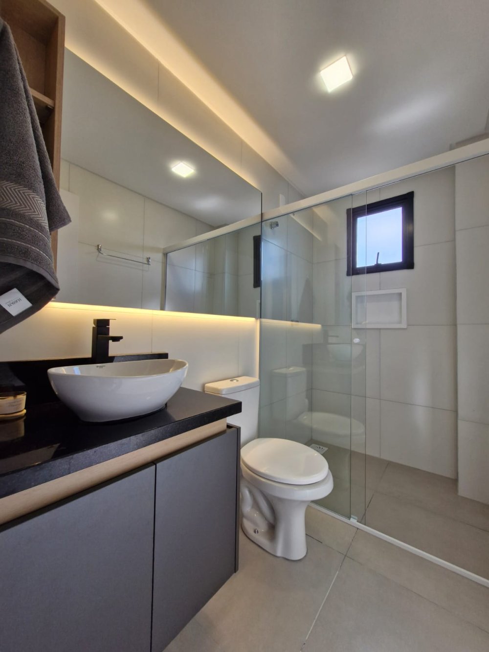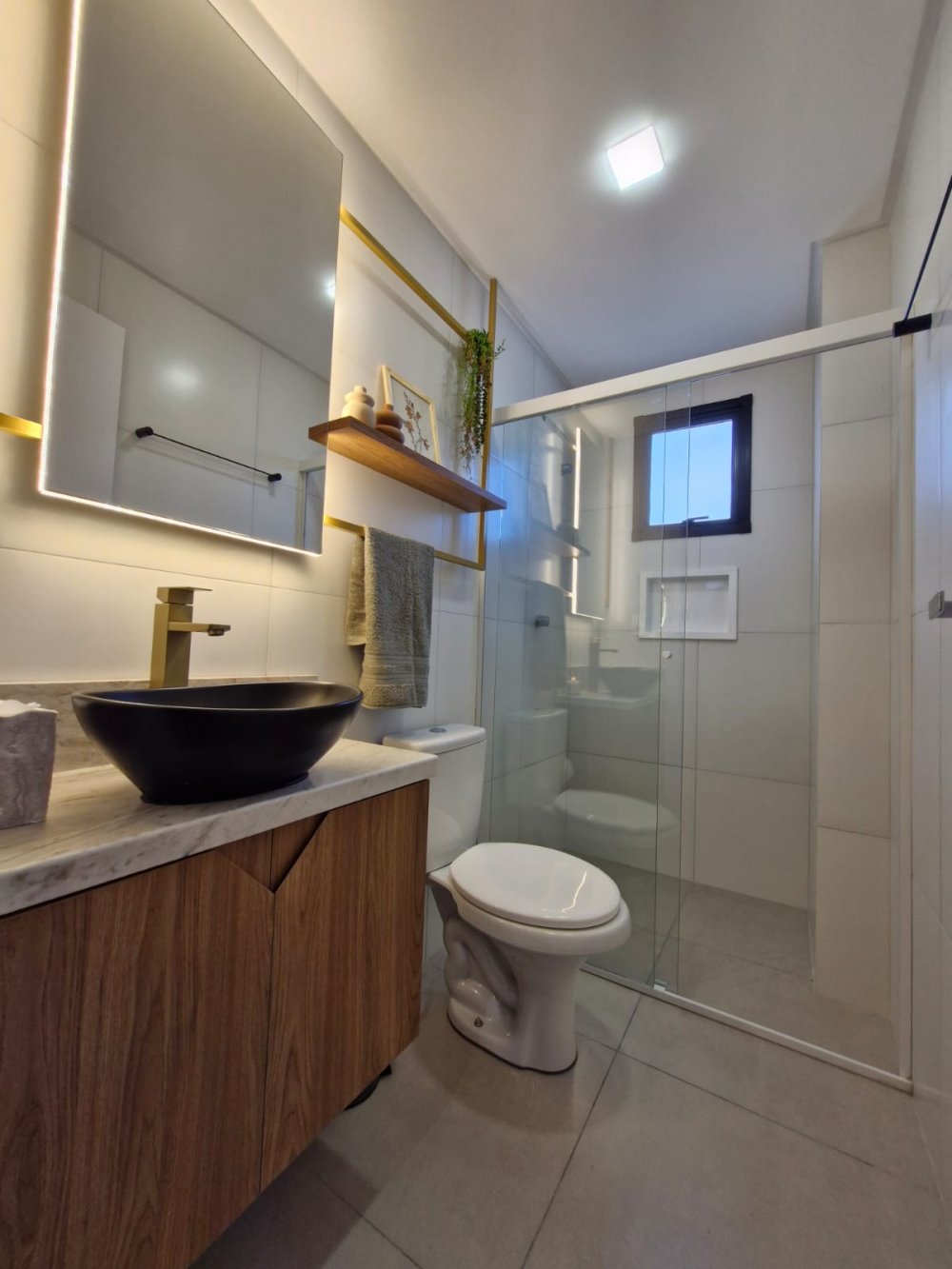 Revestimento em porcelanato e gesso,